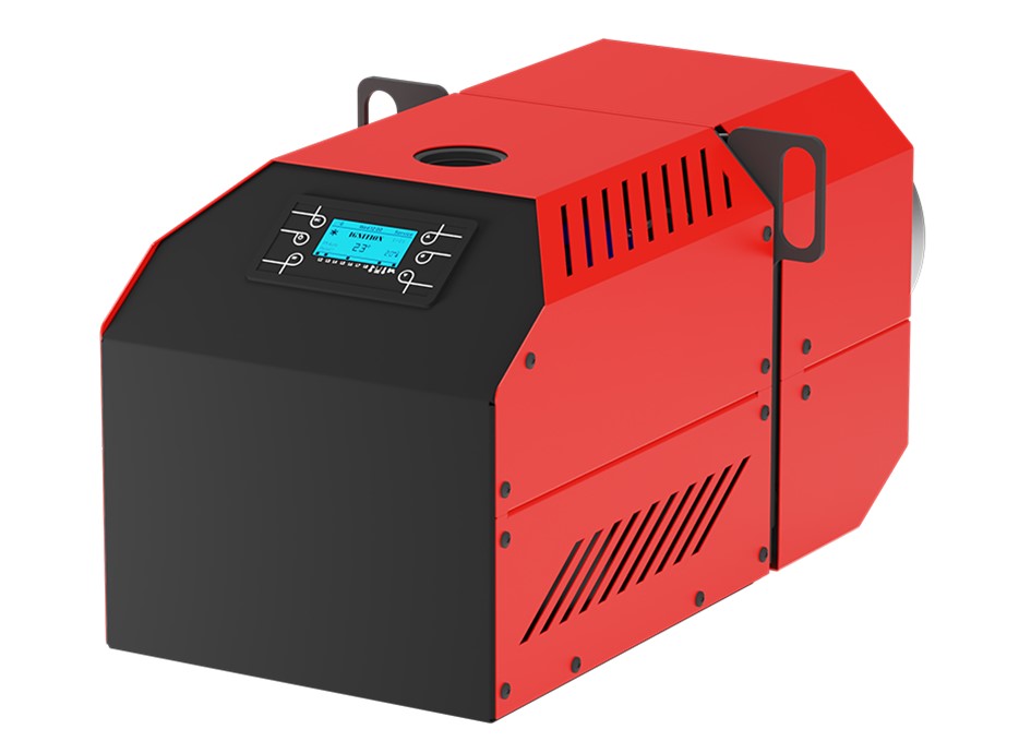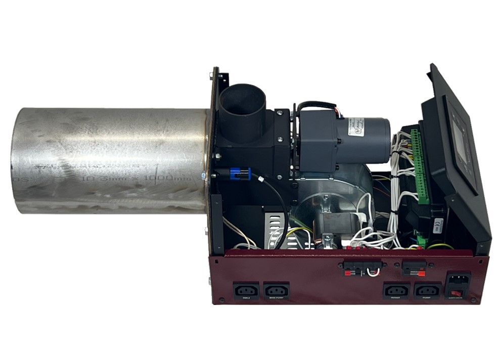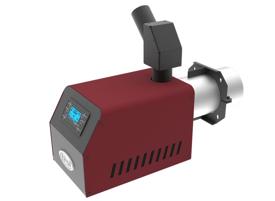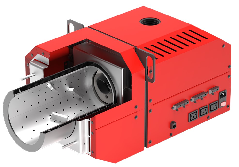 Brûleur 50 kW (plage de fonctionnement 5 à 50 kW) à chambre de combustion rotative. Celle-ci permet par un effet de balancement d’améliorer la combustion – donc le rendement énergétique du combustible et de diminuer corrélativement les résidus de combustion. Combiné au ventilateur, le système rotatif participe à l’excellence du nettoyage de la chambre de combustion.